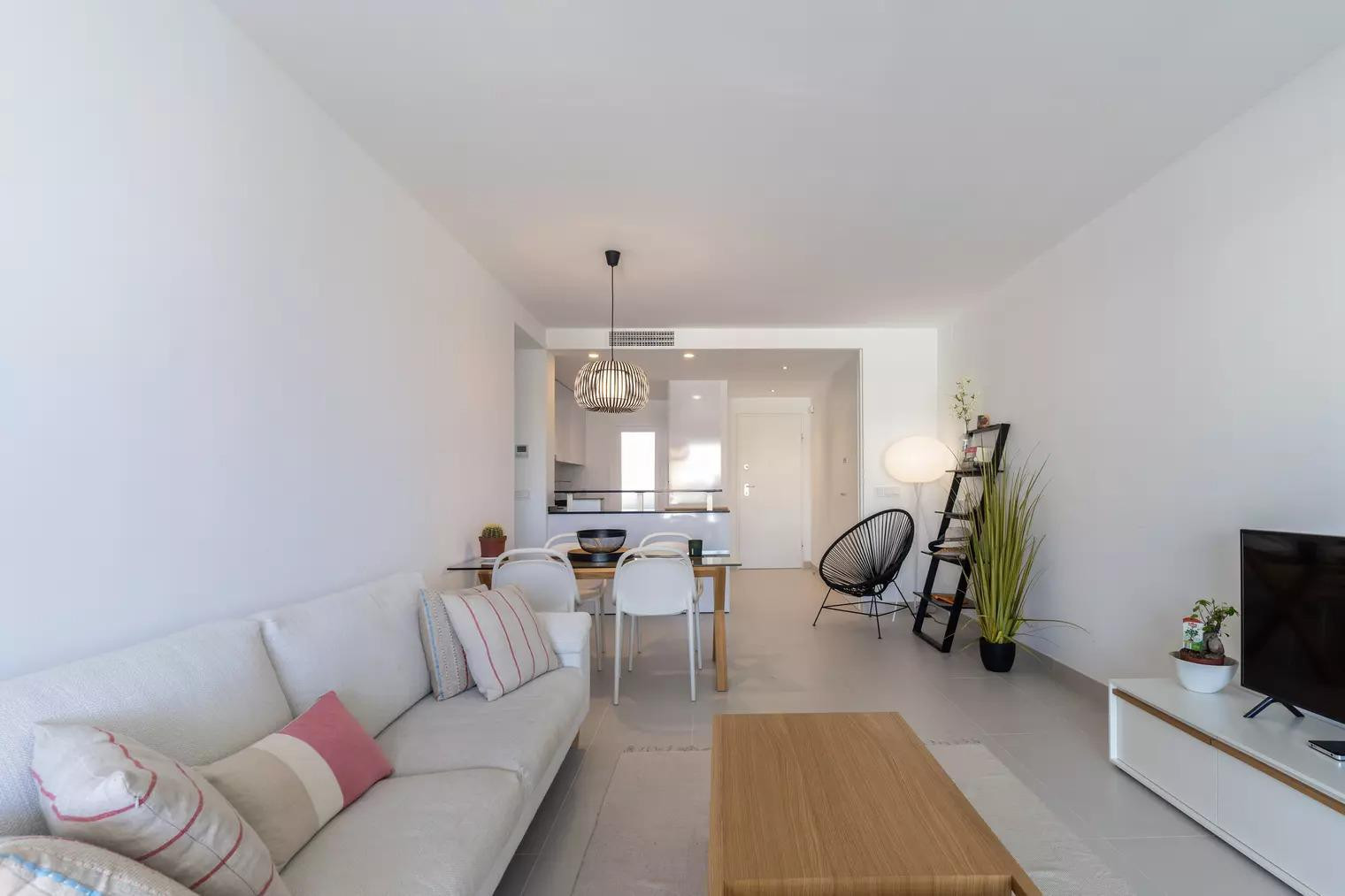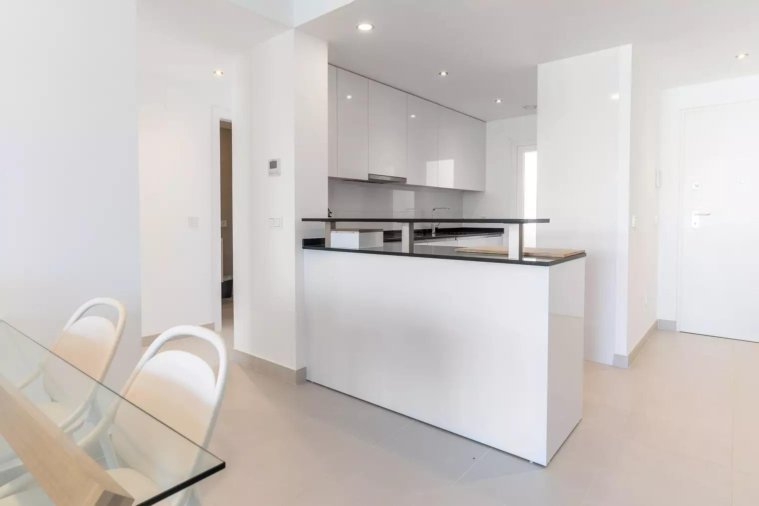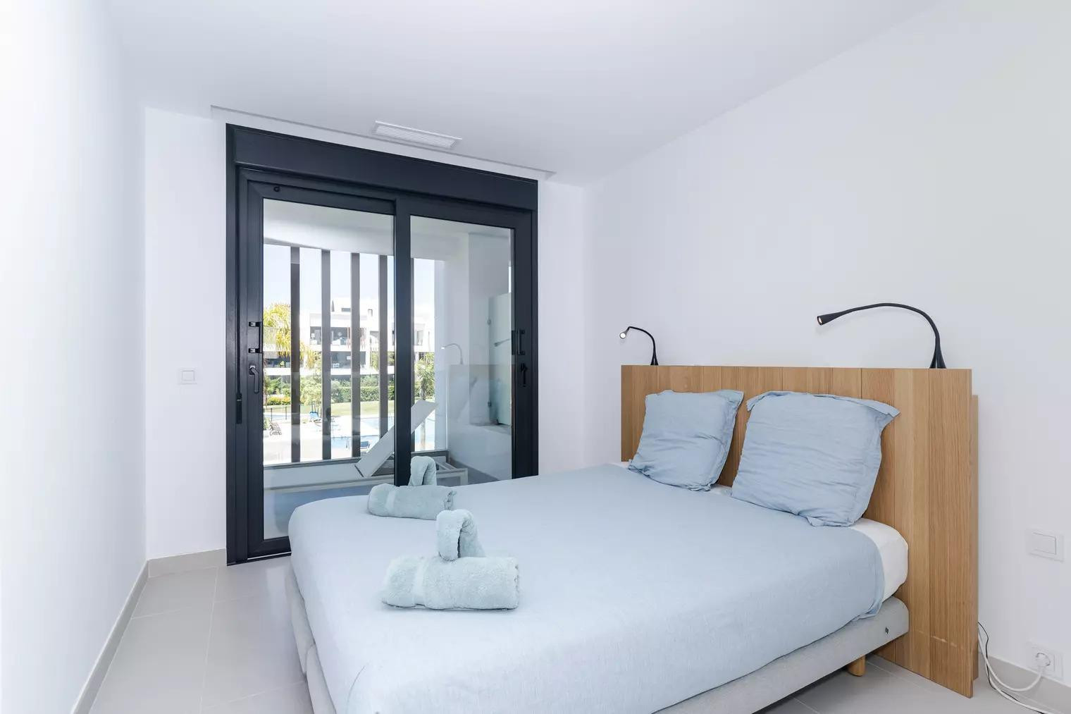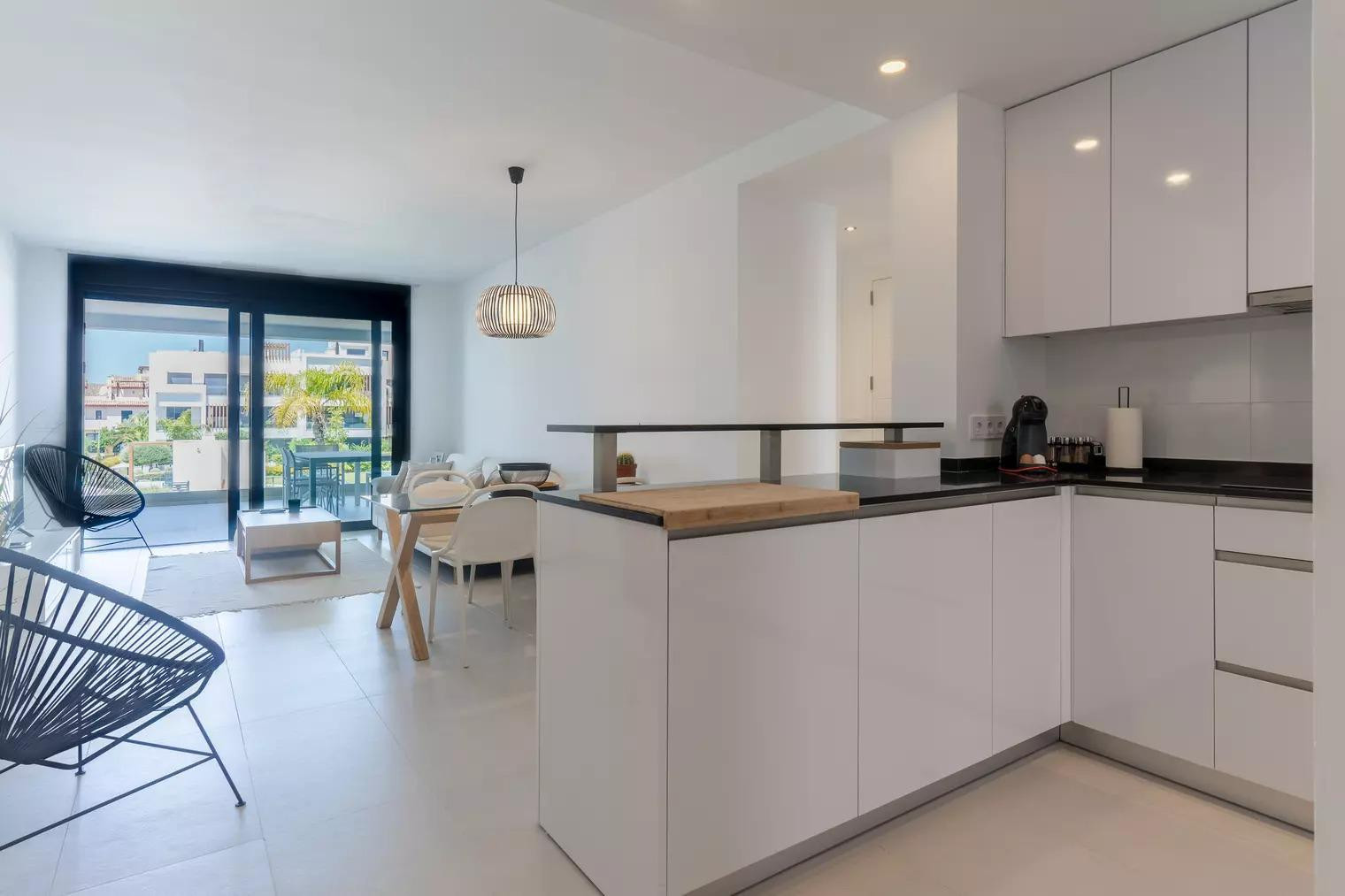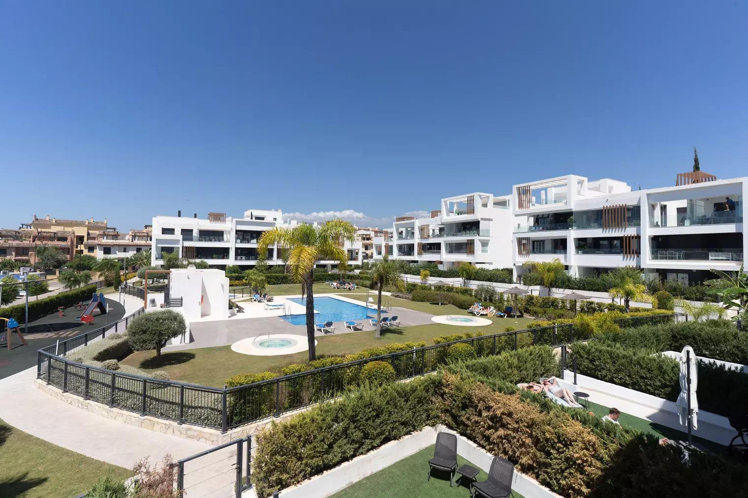 The apartment ‘Miradores del Sol’ is located in Cancelada, Estepona and provides a stylish and comfortable setting for your rental. The spacious 100 m² property consists of a living room, a fully-equipped kitchen, 2 bedrooms and 2 bathrooms and can therefore accommodate 4 people.