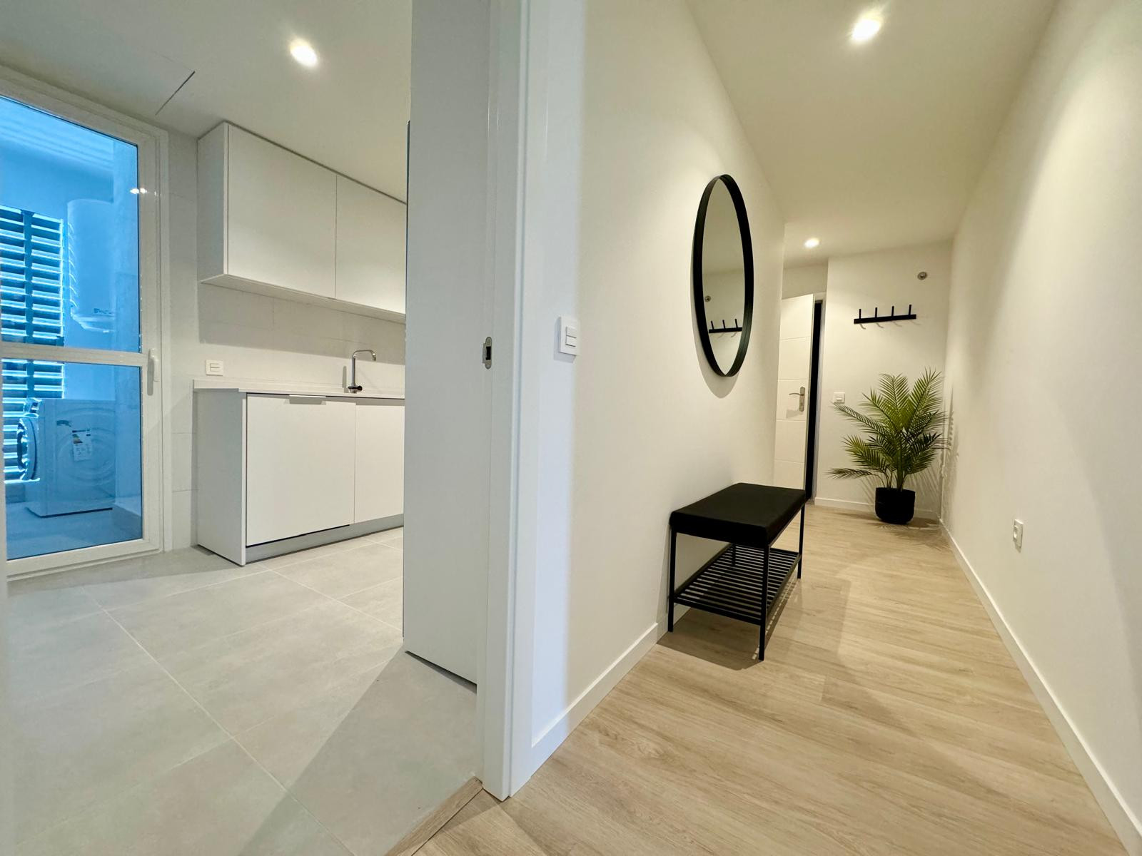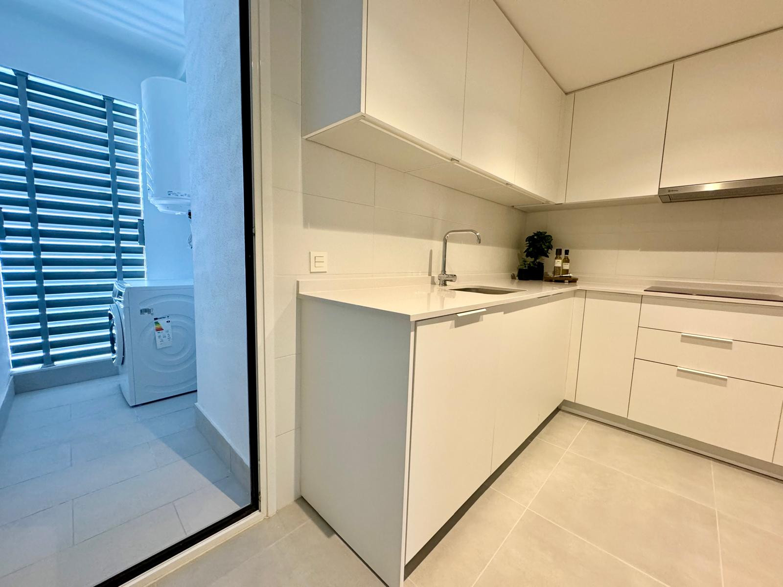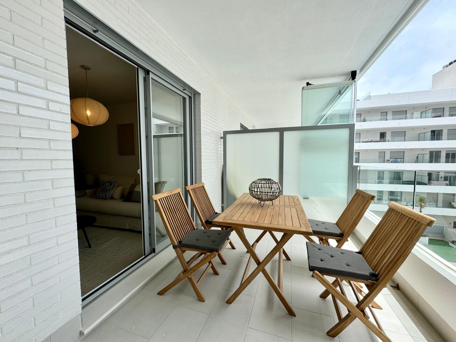 The apartment has a stylish open-plan kitchen and interior design. The living area opens onto a terrace with balcony where you can enjoy on a lounge set and use the dining table.