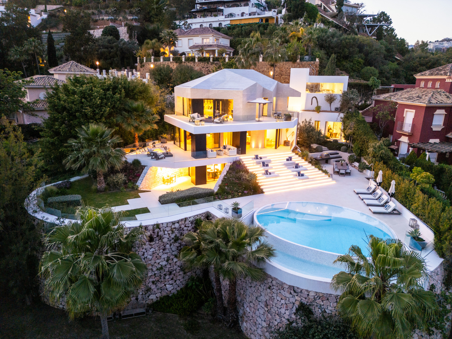Villa La Toca is a striking contemporary home for sale in the exclusive gated community of El Herrojo Alto. Designed by renowned Ames architects and completed in 2021, this three-level residence blends sleek design with comfort across 555 sqm of interior space and 530 sqm of expansive terraces.