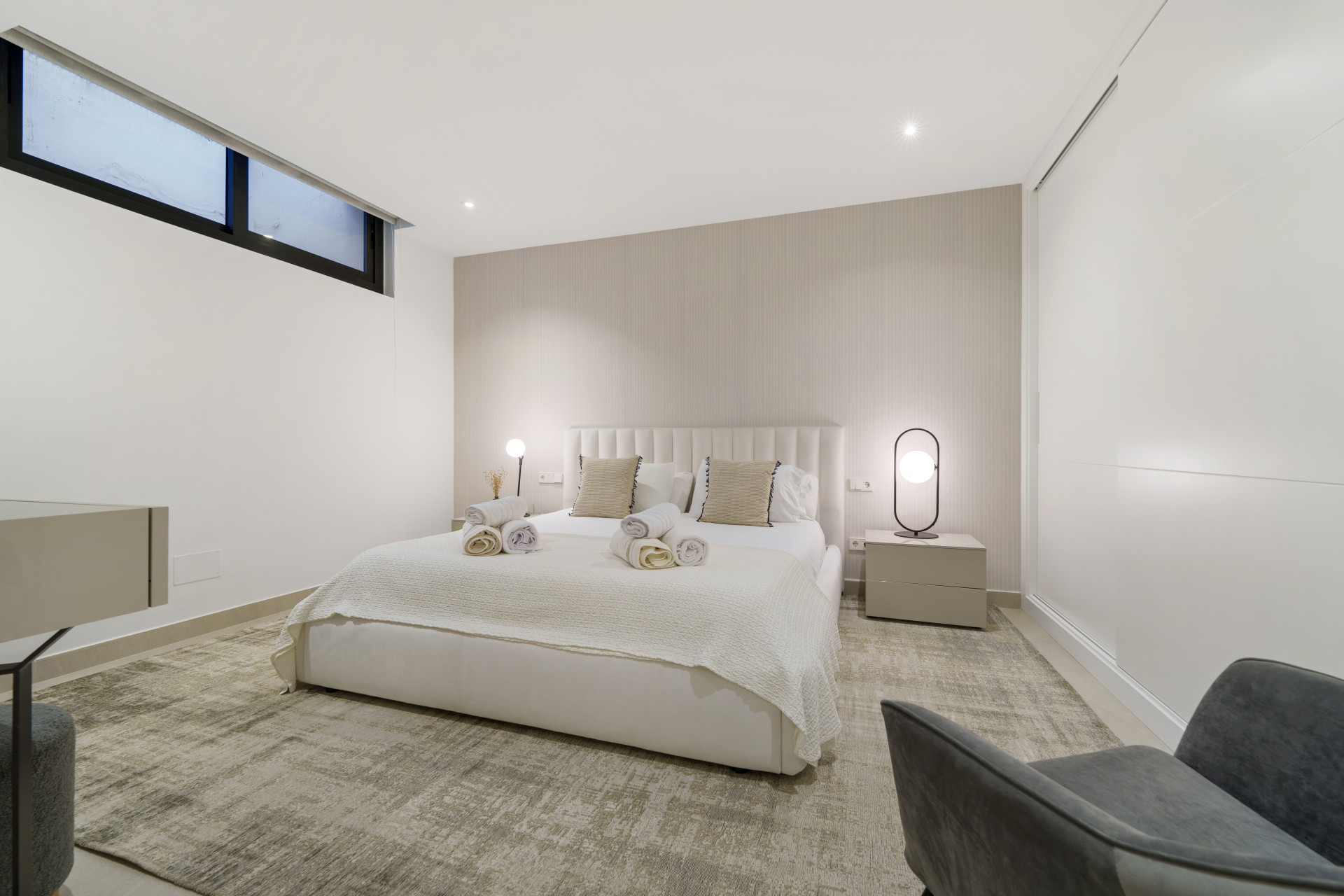 Nestled within the prestigious Altos de Puente Romano on Marbella’s iconic Golden Mile, this exceptional residence represents contemporary Mediterranean living at its finest. Offering six bedrooms and six bathrooms, the villa blends sleek architectural lines with warm natural finishes, creating a refined yet welcoming home just moments from the beach and Marbella’s most celebrated dining and leisure destinations. Expansive floor-to-ceiling windows flood the interiors with natural light, while seamless indoor-outdoor connections embrace the relaxed elegance of the Costa del Sol lifestyle.