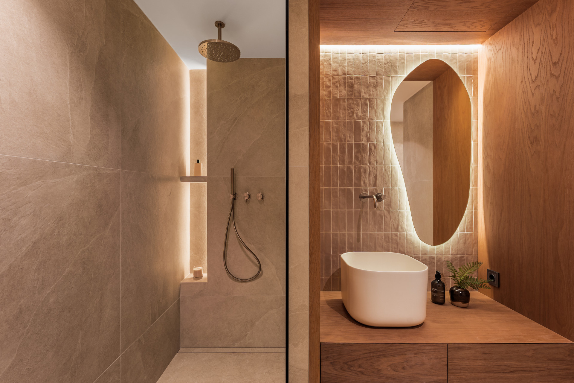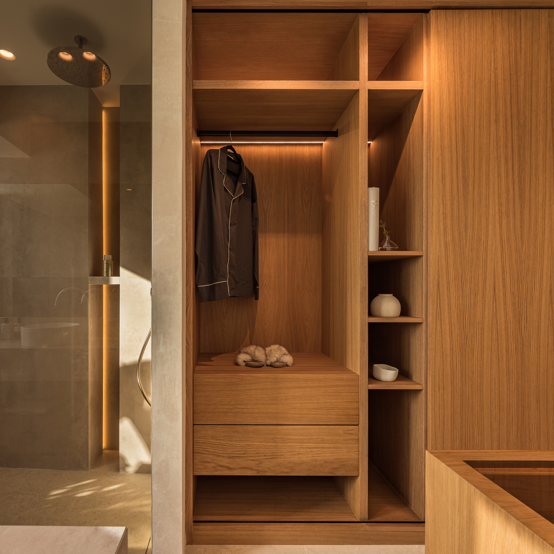 The home has been designed with warmth and balance in mind, combining natural wood finishes with a timeless interior style that feels both elegant and comfortable. The main living area is bright and inviting, flowing naturally through the space and out onto the terraces, which are perfectly positioned to enjoy the afternoon and evening sun. The layout works effortlessly for everyday living and entertaining, with a strong connection between indoor and outdoor areas.